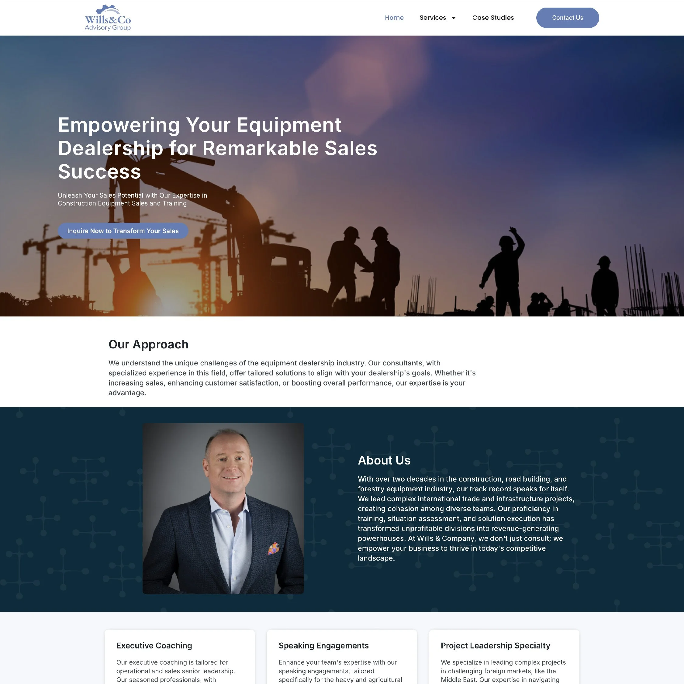 We designed and developed a strong, secure website for Wills and Co Advisory Group. The site was tailored to highlight their extensive services, including Executive Coaching, Speaking Engagements, Project Leadership Specialty, and Sales Training.